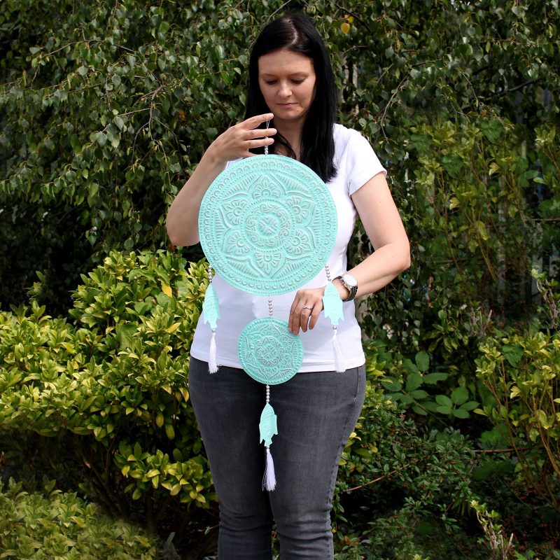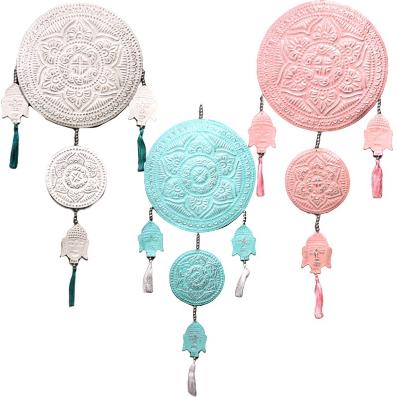 Bali Style Wall Decors in fashionable pastel colours and on trend shapes add a touch of Bali magic to any home. Beaten and hand painted aluminium has been used for generations to make offering boxes for use in temples. Now this same technique is used to make these enchanting aluminium mobiles. Hand made by a mother and daughter business, the designs complete with beads and tassels details make a fresh and beautiful home decoration.
