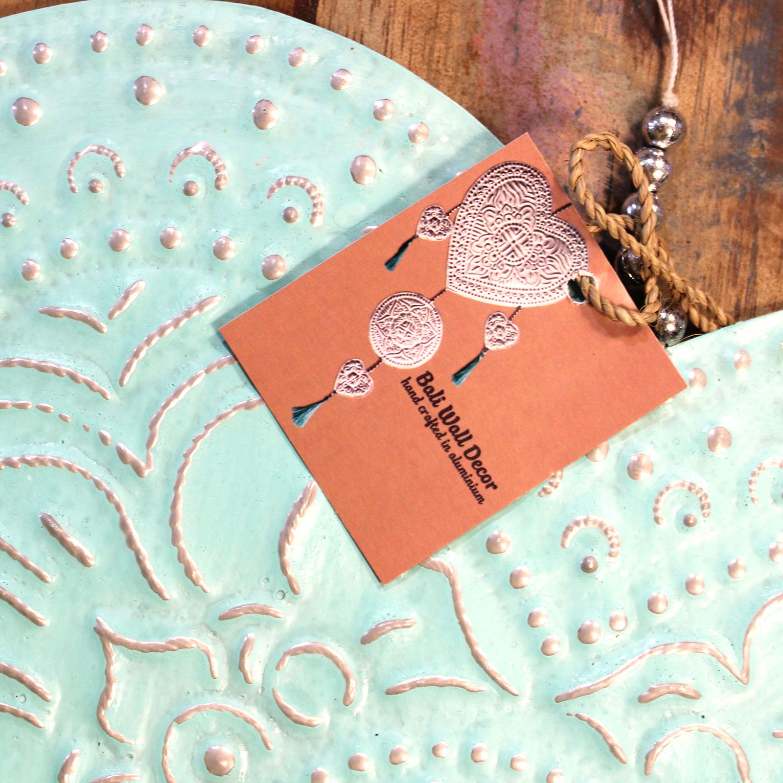 Bali Style Wall Decors in fashionable pastel colours and on trend shapes add a touch of Bali magic to any home. Beaten and hand painted aluminium has been used for generations to make offering boxes for use in temples. Now this same technique is used to make these enchanting aluminium mobiles. Hand made by a mother and daughter business, the designs complete with beads and tassels details make a fresh and beautiful home decoration.