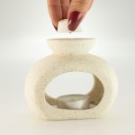 Ceramic Zen Oil Burner – Oval Pebble – Speckled Off-White