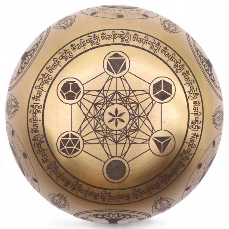 This handcrafted set of four brass singing bowls captures the artistry and symbolism of Tibetan tradition. Each bowl is intricately etched with sacred patterns, including the Buddha motif, Tree of Life, lotus flowers, and geometric mandalas – representing harmony, wisdom, and enlightenment.